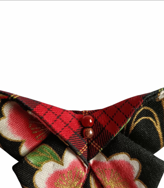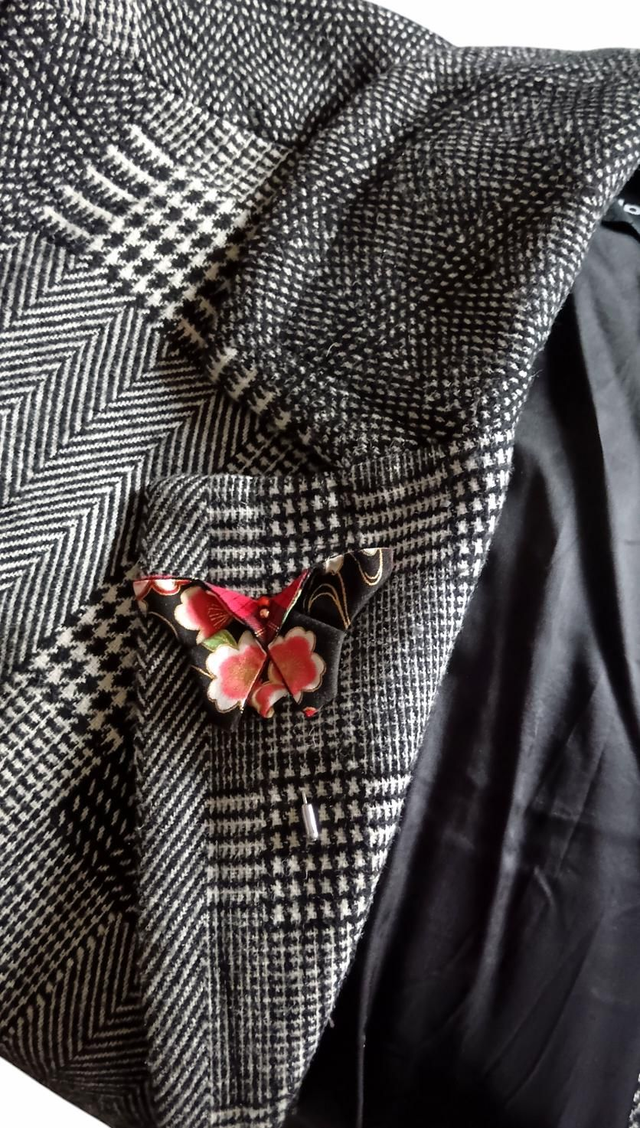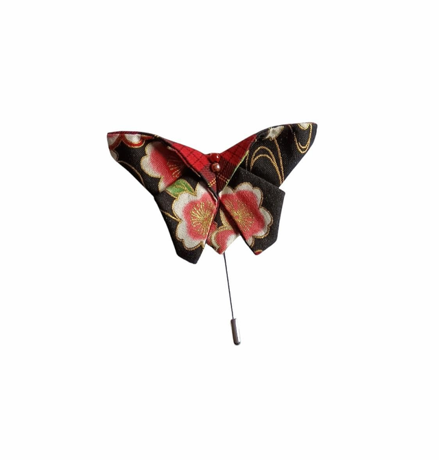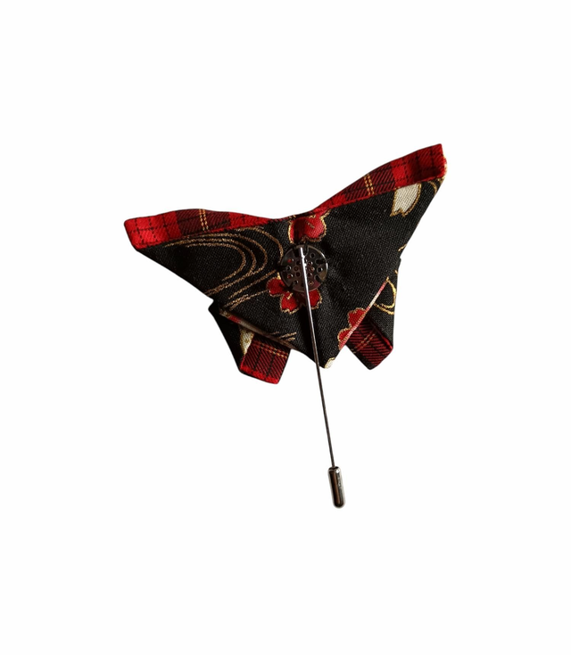 Broche papillon/ Fibule origami tissu Japonais rouge et noir