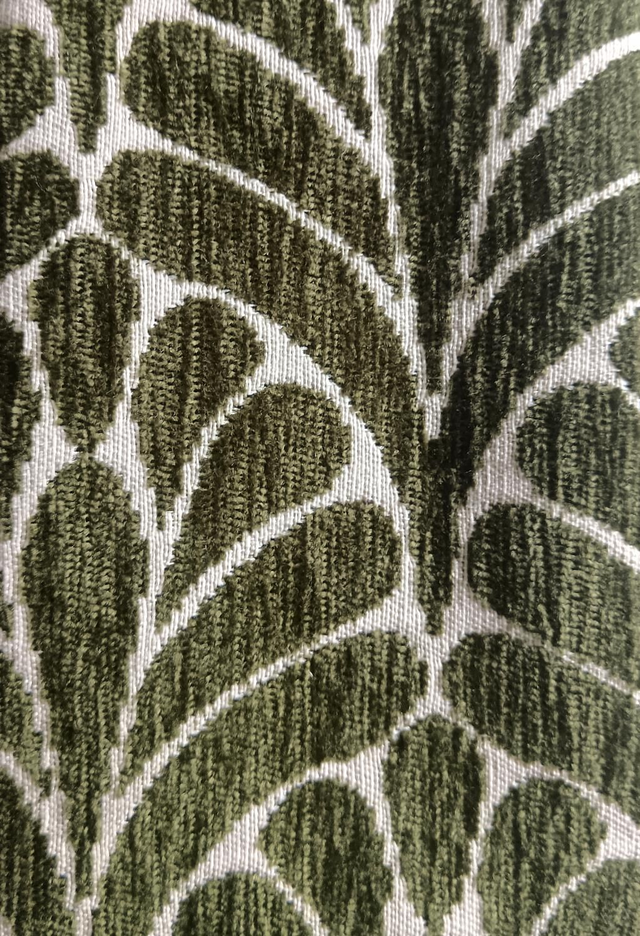 motif de feuilles kaki sur fond blanc et un tissu japonais rouge à fleurs.
