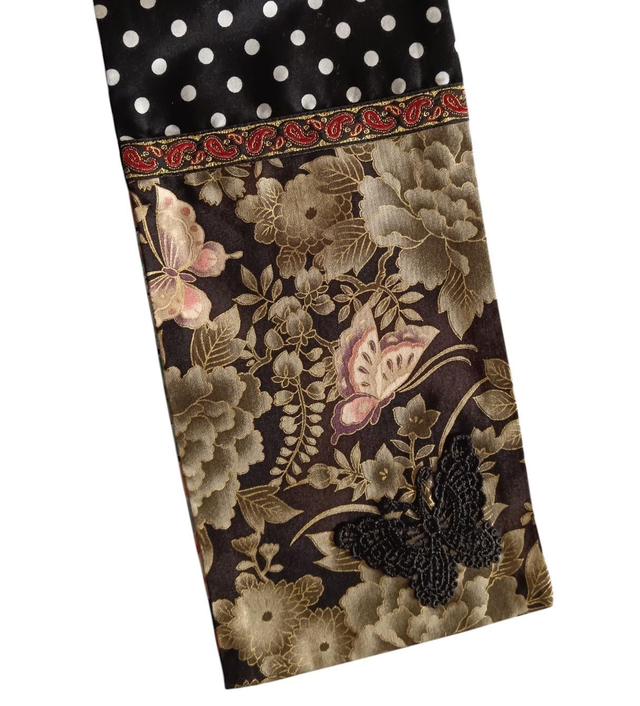 Mélange original de différents tissus, 100% coton noirs et multicolores, velours, toiles vintage neuves et tissus de créateurs.