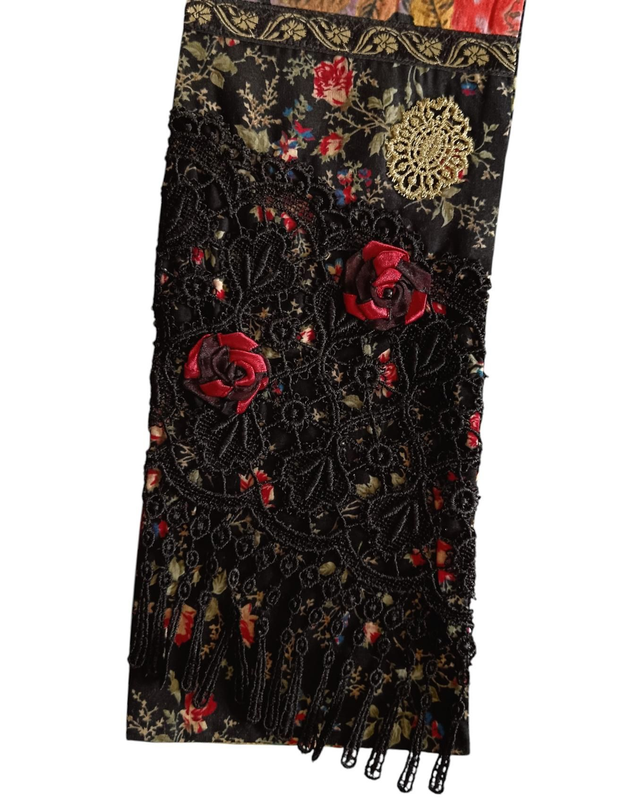 Echarpe ornée de rubans, dentelles, fleur, passementerie...