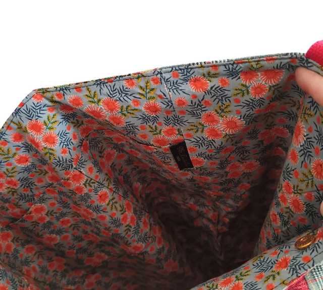 Doublure en coton à petites fleursx( voir photo 7) avec 3 poches intérieures vous permettant de retrouver facilement vos petits essentiels.
