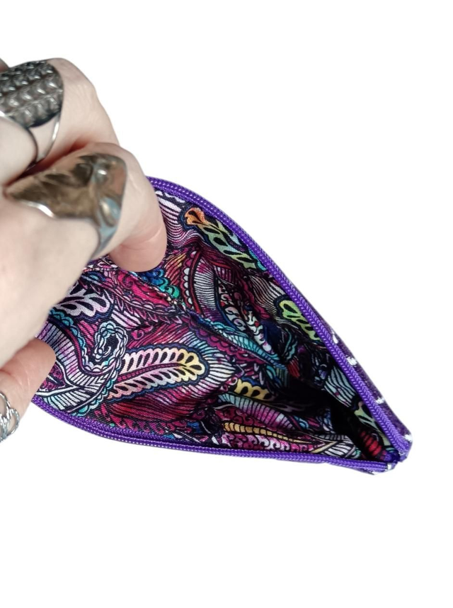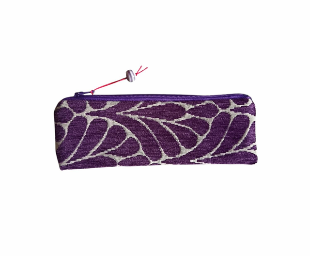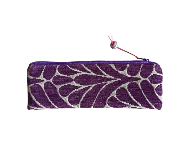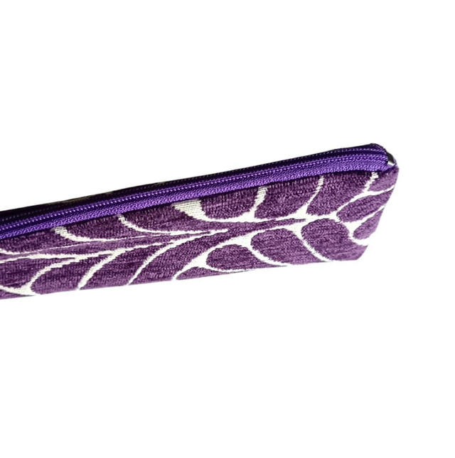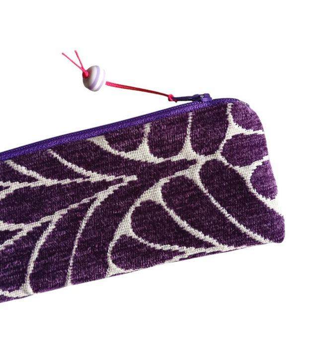 Mini trousse en tissu Jacquard velours violet et blanc.