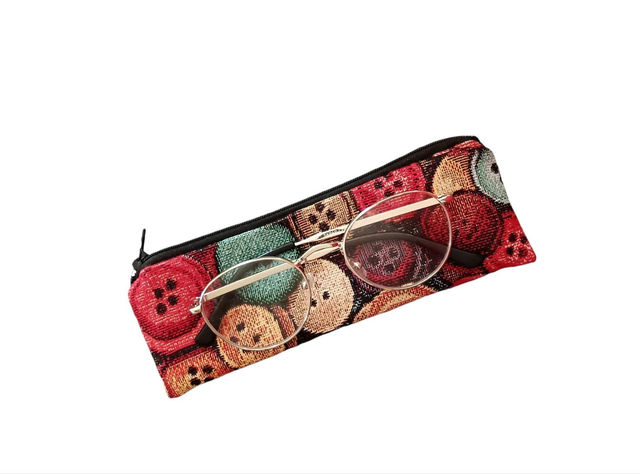 Mini Trousse pour stylos/ trousse longue / trousse tapisserie/ Pochette stylos originale/Etui à lunettes /Tissu Gobelin "Boutons".