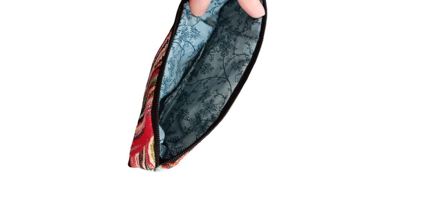 Mini trousse en tissu Jacquard Gobelin épais à motifs de boutons multicolores.