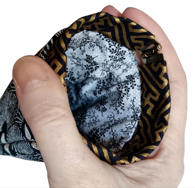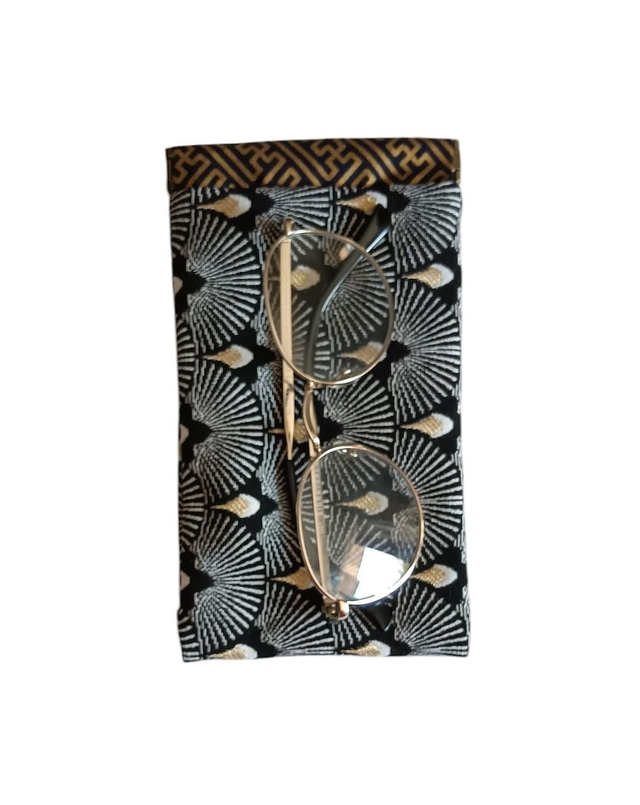 Etui à lunettes réalisé dans un mélange de deux tissus.